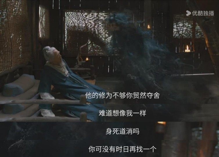 但同时,剧也用更多残酷的笔触,夺舍的真相、张铁之死的真相,去展现冰冷的背叛。金士杰塑造墨居仁,有套复杂的微表情处理。慈师与魔鬼的双面性,在细节里令人毛骨悚然。瞳孔深处,他总是在计算这具身体何时能修到第四层。每当关起屋子,就会和余子童密谋下一步的作恶手段。和韩立“摊牌”时,更是编了个半真半假的故事,尽显阴险狡诈的气质。随后迎接韩立的,就是时刻监视、用毒药控制、拿家人威胁。