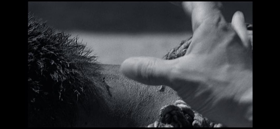 ·镜头 后面还有几场戏,人物脸部的倒置镜头出现了三次,同一种手法短时间内多次使用,肯定是导演有意安排的,暗示着角色身份、心理的错位,还有民众所处生活的颠倒,表现在马大三身上就是自己辛辛苦苦养着日本兵和汉奸,还要提防着别被日本人发现。在随后他提议“咱俩跑了吧”后,镜头又转换成了90度的倾斜构图,暗示着角色迫切想要逃离的心理,所以他在后来村民们商量如何处置那两人的时候,也是唯一同意拿人换粮食的那个。