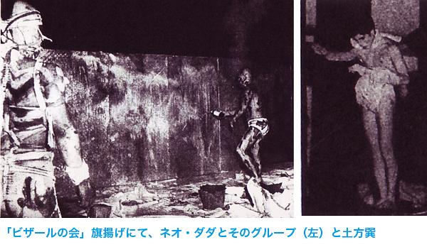 「ネオ・ダダとそのグループの、ブリキ板に塩酸をかけて、斧でメッタ打ちにするイベント、数羽のニワトリをしめ殺す暗黒舞踏派のダンスなども、当時の時代感情の反映としてとらえれば、それほど奇異なものではなかった」