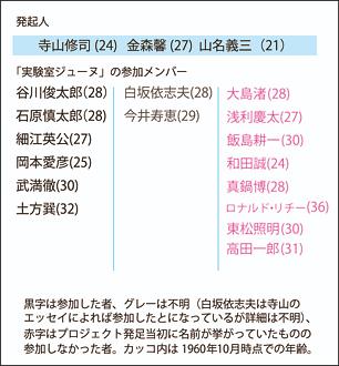 发起/参与成员一览(黑字为确认参与的人 灰色是情况不明 红色是初期提名但没参与的人 根据导演记载白坂依志夫也曾参与 实际情况不明)