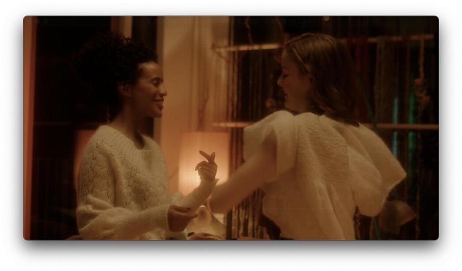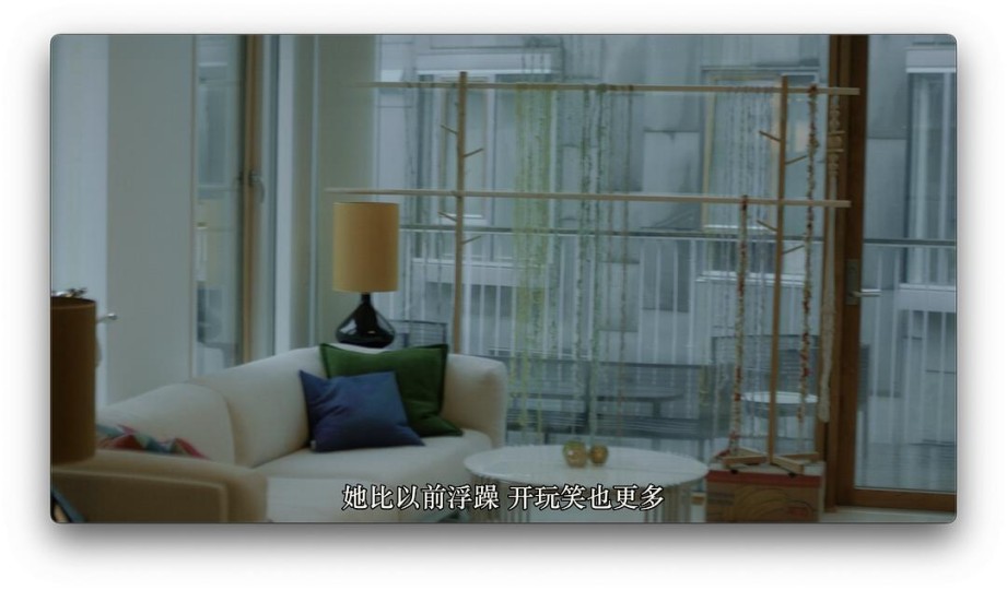 《梦》中,所有的草地、绿植、绿色衣服、绿色耳坠、朋友的绿色头发、绿色抱枕、绿幕转场等等都是约翰妮的代表色,这些场景是她的生活区域或者表明她的在场。