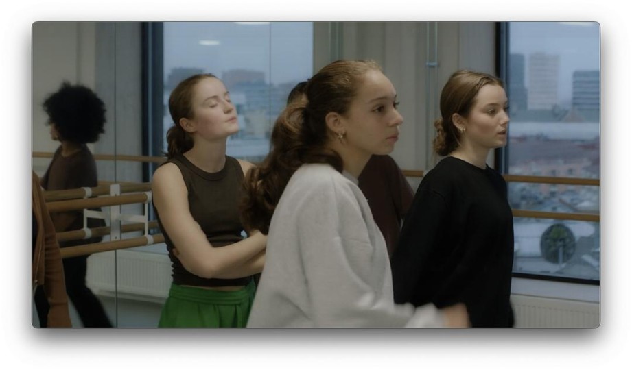 影片开场约翰妮在舞蹈课,注意绿色裤子与发型