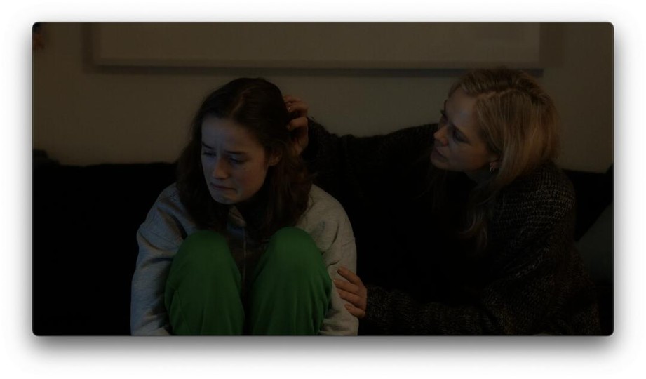 约翰妮回到家和母亲沟通发生的事情,脱掉绿色外套