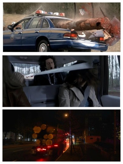台词呼应:验尸官提到有一个躲过死神追杀的人,就是《死神来了2》中的女主金伯莉,她通过溺水、心脏骤停1分钟而骗过死神,最终幸存。验尸官曾经说过“只有新生儿才能对付死神”,而鲍比和哥哥在医院里有一个镜头交代了“新生儿监护室”。 海报致敬:艾瑞克胸前的骷髅纹身被轮椅钢管穿透,这一幕致敬了《死神来了5》的海报。 情节致敬:三人离开医院的时候差点撞上一辆满载圆木的卡车,这是《死神来了2》的彩蛋。