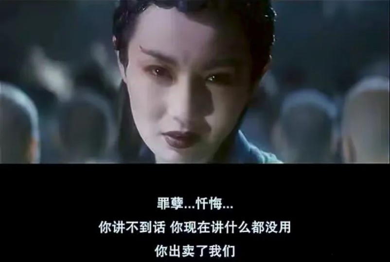这一幕,应该是整部电影最让人难忘的画面。张曼玉在那一刻呈现出一个非常耐人寻味的表情,有成长后的领悟,体验过后的回味,也有见识到人性真相后的失落和幻灭。虽然情欲爱恋都是出自于人,但人类对此的态度又是如此的不堪一击。要么虚伪不敢承认,要么承认了又不敢坚守,因为贪婪,因为懦弱,因为权衡利弊,于是随时都可以动摇和妥协。小青最初是跟着姐姐学习人类的感情,后来发现姐姐比人类更看重感情,自己对姐姐的感情也比人类更真挚。她作为妖,对人的态度于是经历了这样的转变:好奇人类,向往人类,学习人类,理解人类,质疑人类,鄙弃人类。