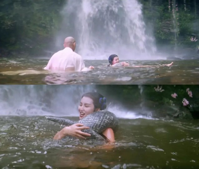 这场戏多年来引发了无数人的讨论猜想,有人说这其实就是男女双修,还有人引经据典考据出法海其实也是一条蟒蛇,小青抱着的蛇尾就属于法海,至于水面鼓起的泡泡,就更是让人浮想联翩。大家基本上已经达成了共识:这就是一场表现性爱的激情戏,只不过用了一些隐晦的表达方式。