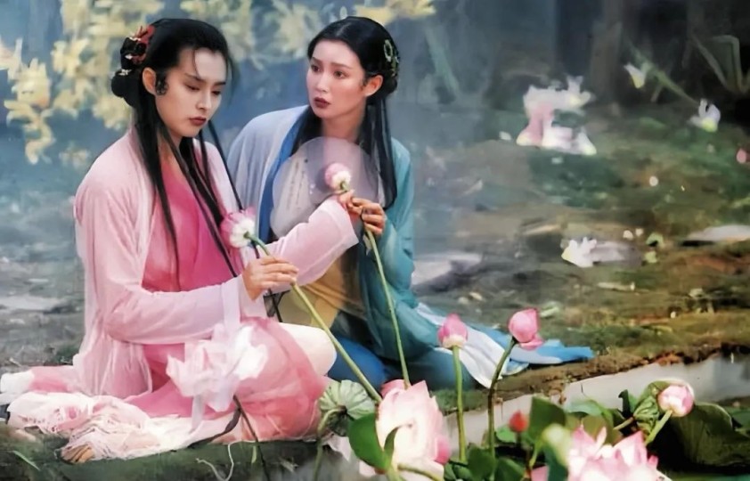 那时候我才十岁左右,吸引我的都是一些声色光影的东西:穿着华美衣服的漂亮姐姐,在镜头前像蛇一样扭啊扭;宛若仙境的荷花池,以及那些古典精致的建筑景观;悠扬婉转的音乐,让人过耳难忘。电影的整体格调是那样的特别,如梦似幻,超凡脱俗,波光滟潋,是我在别的影视剧里从没见过的。现在我知道了,这部电影其实就是我的审美启蒙。
