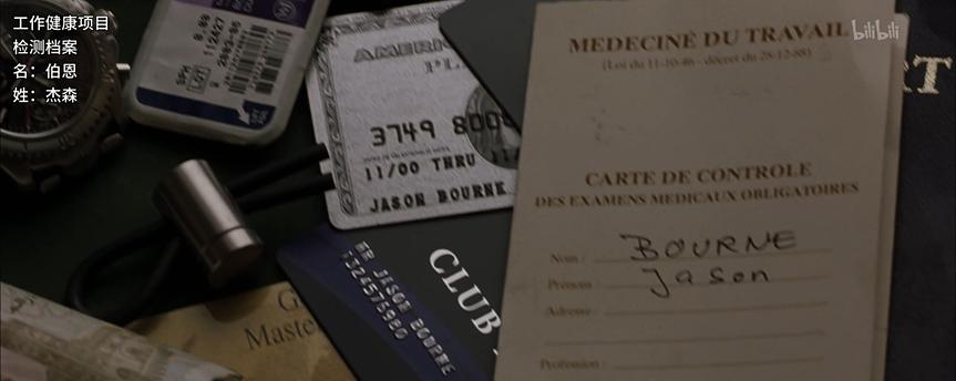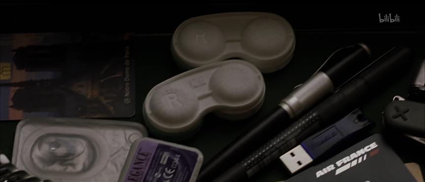 2.伯恩存在银行的保险箱,内含隐形眼镜(为改变瞳孔颜色),U盘,会员卡,护照,笔,电话卡,银行卡,钱等等,以及夹层下的小惊喜——