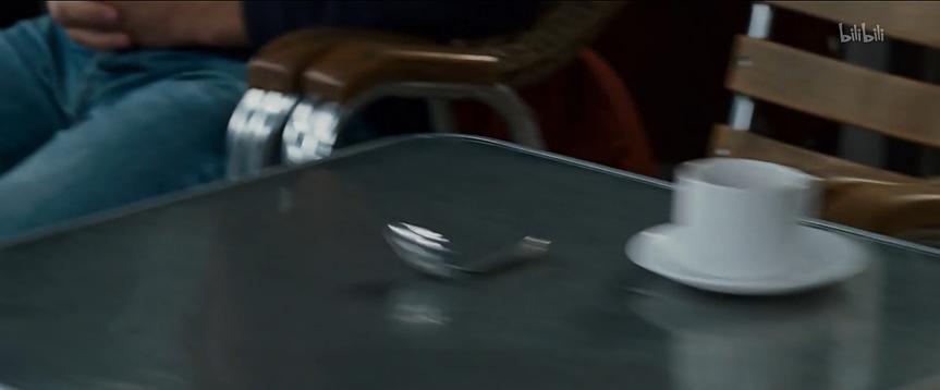 为友军留信号告知自己的方向。图为Bourne的同事Nicky被追杀时用勺子指方向+拆手机扔地上告诉Bourne自己的行踪。