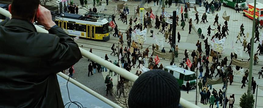 ②挨个酒店打电话,排查上司的落脚点。紧接着同时给上司打两个电话,利用占线得知房间号,同时不暴露自己是caller。等待上司出门后尾随,这时我们才知道伯恩最终的目的——找到CIA的柏林临时窝点。