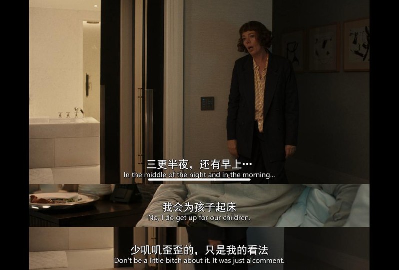 齐泽克说人们有时候“喊口号恰恰是为了摆烂”,西奥“喊口号”式的自我批判和鼓劲的失败之处或许不在于通过口号来取消在现实中的努力,而在于,即便他试图把“养育子女”看成与设计和建造同样的“生产性”劳动,他作为“奶爸”的新的生命存在形式依旧需要外界即艾薇的照见与肯定,而可惜的是,艾薇给他的只有否定。旧的身份消失了,新的身份也没有被认可,西奥的痛苦,是他自身存在性价值的双重崩塌(外部与内部)。而他终于也感受到了失权——这是一种存在论层面的危机,一种许许多多女性几乎习以为常的危机。